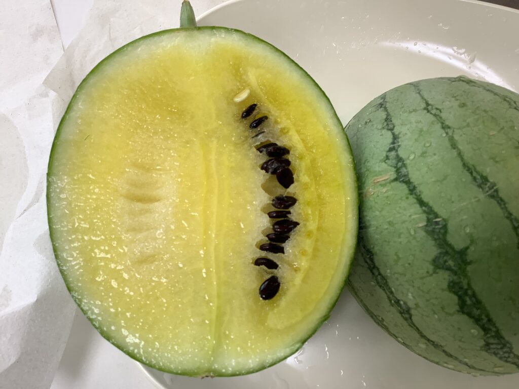 庭に実ったスイカ、少し小さめだけど収穫して食べてみた。