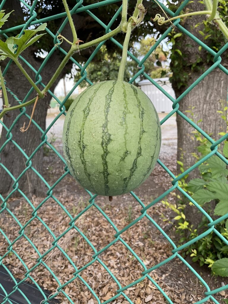 庭に実ったスイカ