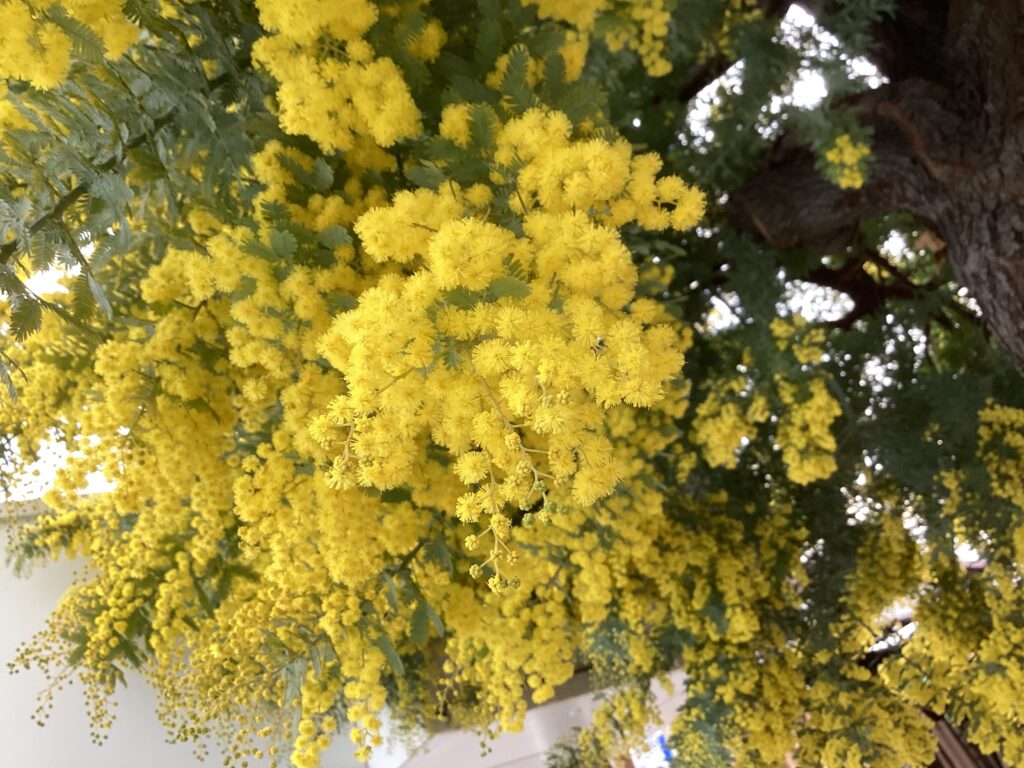 我が家のシンボルツリー、ミモザが今年も満開です。